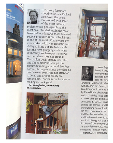 After years of working at New England Home with the most talented photographers in the country, I was really honored with this tribute from photographer Jim Westphalen in New England Home’s ten-year anniversary issue.